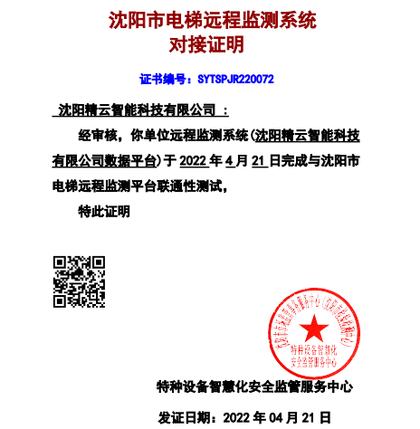 電梯物聯(lián)網(wǎng)設備通過沈陽市電梯遠程監(jiān)測系統(tǒng)驗證